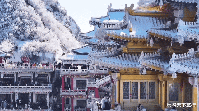这是当然景不雅与东谈主文缔造的绝妙和会,在国内其他山峰类景区,或仅有雪景,或仅有古缔造,很难有如斯密集、壮丽且与山势好意思满契合的缔造群与冰雪云海共舞。
